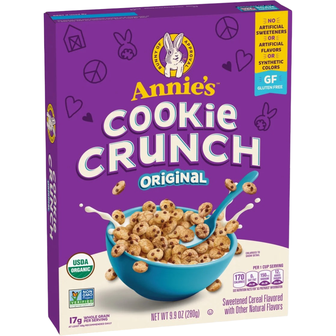 - CONTAINS: One cardboard box of crunchy Annie’s Cookie Crunch Original Cereal, 9.9 oz; Perfect for instant snacking, or a part of breakfast and meals