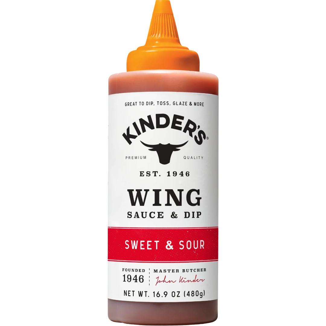 Kinder's Sweet & Sour Wing Sauce & Dip delivers the perfect balance of rich sweetness and tangy vinegar with subtle notes of pineapple and ginger for a bright, flavorful finish. Just like the name says, it's the perfect balance of sweet and sour and we think you'll love it. This versatile sweet and sour sauce is perfect for dipping, glazing, and drizzling over wings, chicken fingers, grilled chicken, pork chops, salmon, shrimp, and more, making it a go-to for everything from weeknight meals to backyard cookouts.