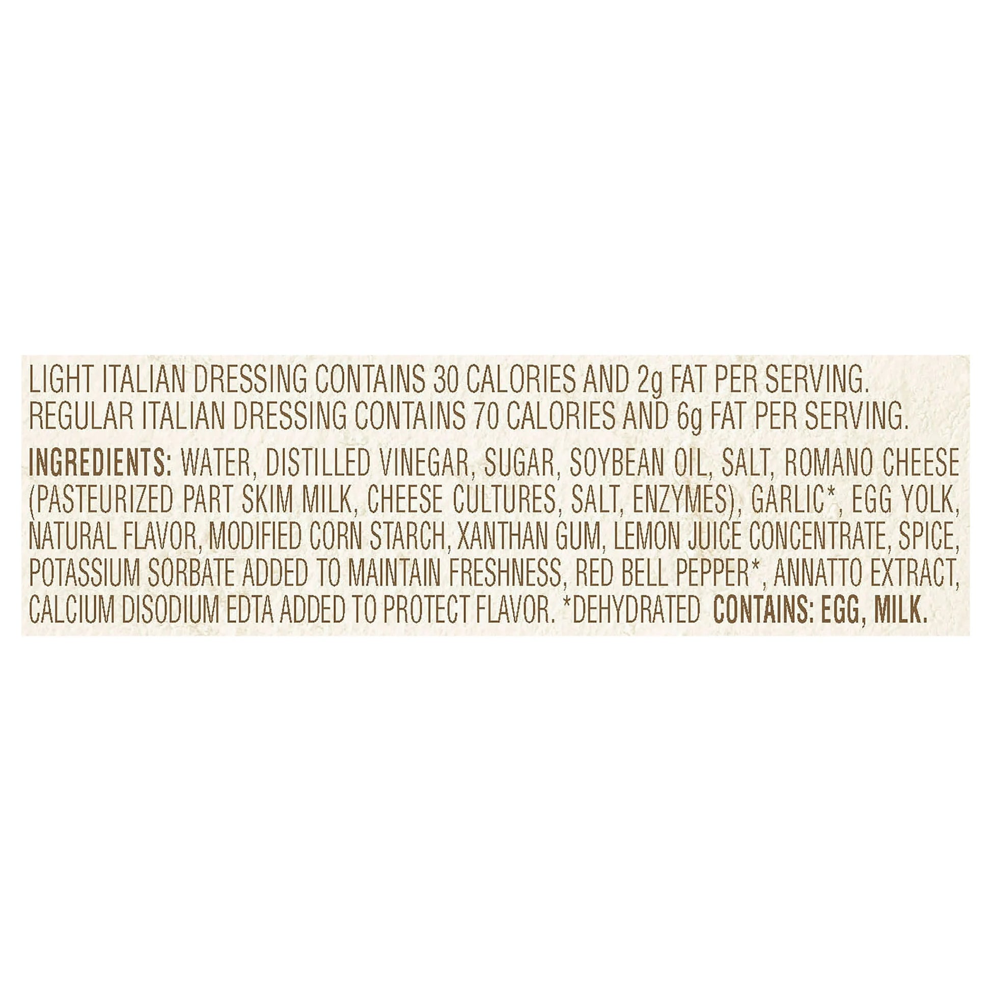 - BRING HOME THE FLAVOR YOU LOVE: Our Light Italian salad dressing brings the tradition of authentic Italian flavor to your salads with just 30 calories per serving.