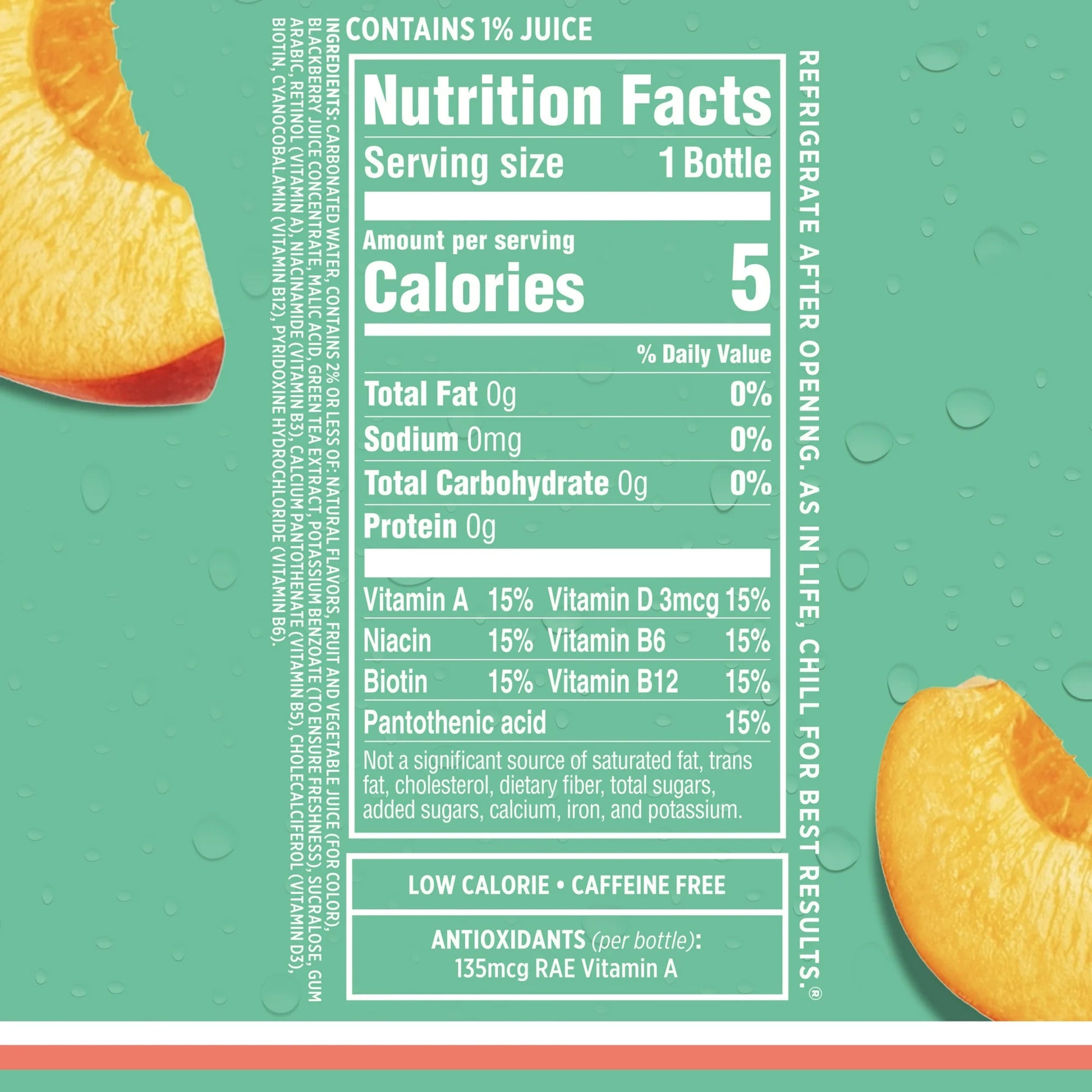 We’re not quite sure what the difference is between a peach and nectarine, but it doesn’t really matter—we ended up taking the best of both and made sweet, juicy bliss. Sparkling Ice Peach Nectarine is a fizzy, flavorful sparkling water, without all the calories. Sparkling Ice Peach Nectarine flavored sparkling water contains 0g sugar, only 5 calories per bottle, and 0g carbs. Made with better-for-you ingredients, this low-calorie carbonated water is bursting with real fruit flavor, is made with colors from natural sources, and contains vitamins and antioxidants. Enjoy Sparkling Ice as a mocktail or mix it with your drink of choice for a delicious, low calorie cocktail. Each sparkling water bottle contains 17 fl oz.